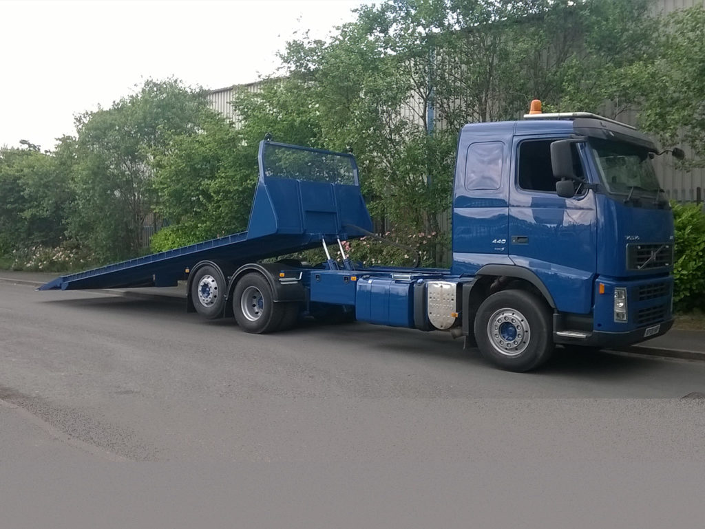 Sonic Drilling ask us to make them a hydraulic heavy duty tilt and slide body on their Volvo to carry there drilling rigs.